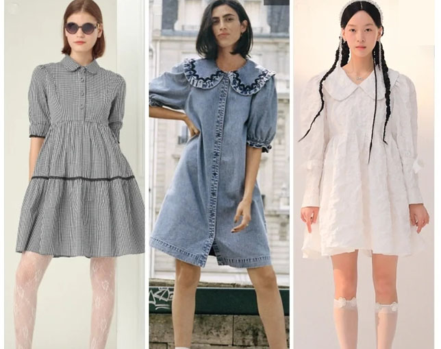 Peter Pan collar dress: This season has seen a large number of girly feminine styles, the doll collar design is still the key, with the sweet smell of aging Peter Pan collar design is favored, giving dress design a girly feeling, and marks the beginning of the quantitative retro trend to commercial development.