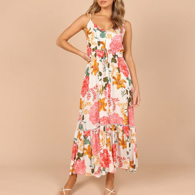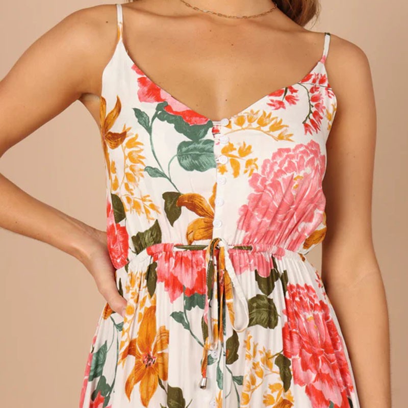 Aesthetic Floral Waist Lace-up Maxi Dress