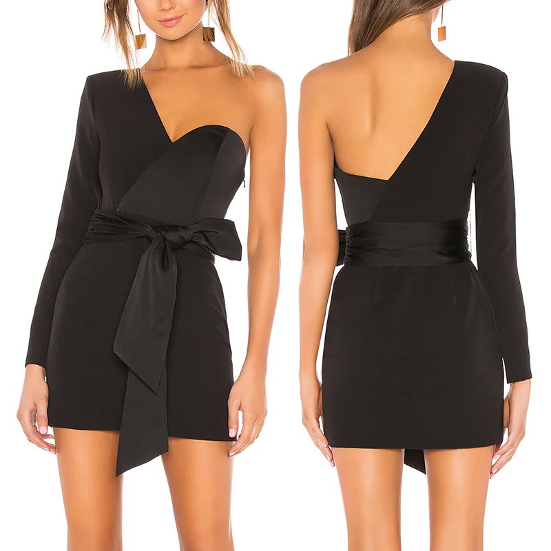 Fashion One Shoulder Long Sleeve Design Black Business Blazer Mini Dress