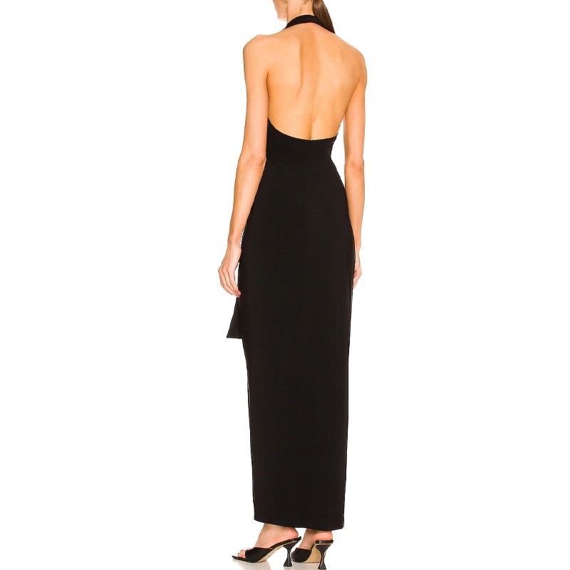 Fashion Halter Sexy Side High Slit Backless Design Black Corset Dress