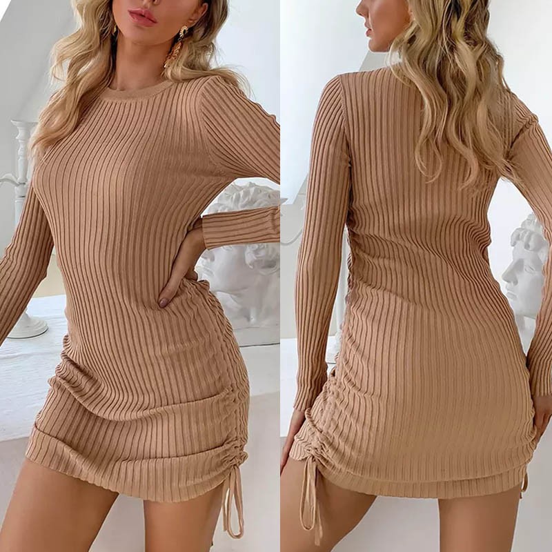 Autumn/Winter Side Drawstring Bodycon Knit Mini Dress