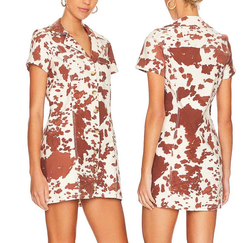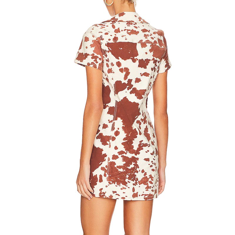 Women Summer Fashion Cow Print Single-Breasted Shirt Mini Dress
