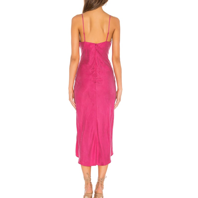 Fashion Elegant Cowl Neck Magenta Sexy Slim Midi Slip Dress