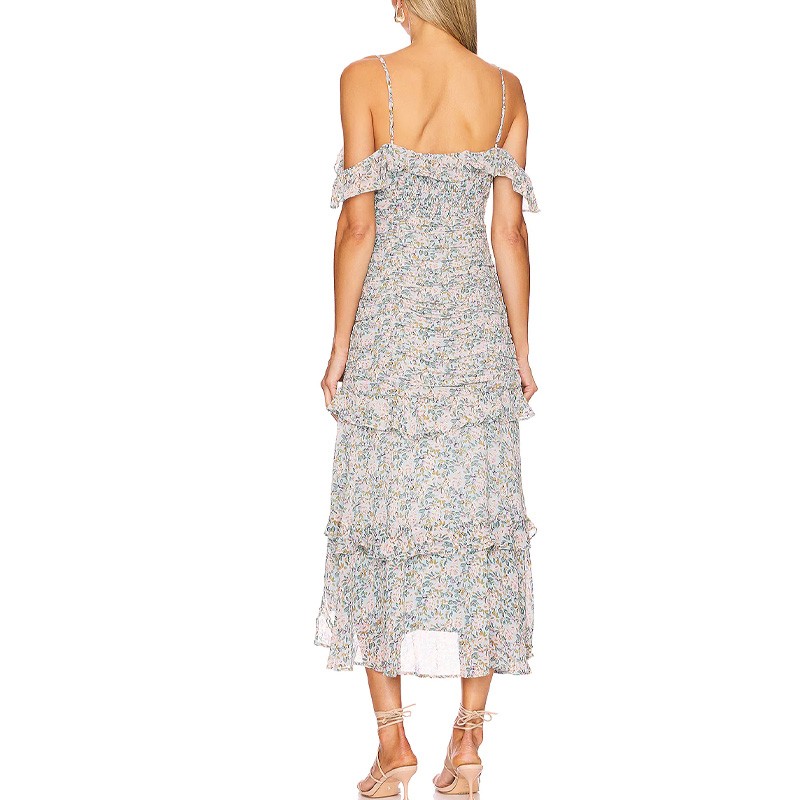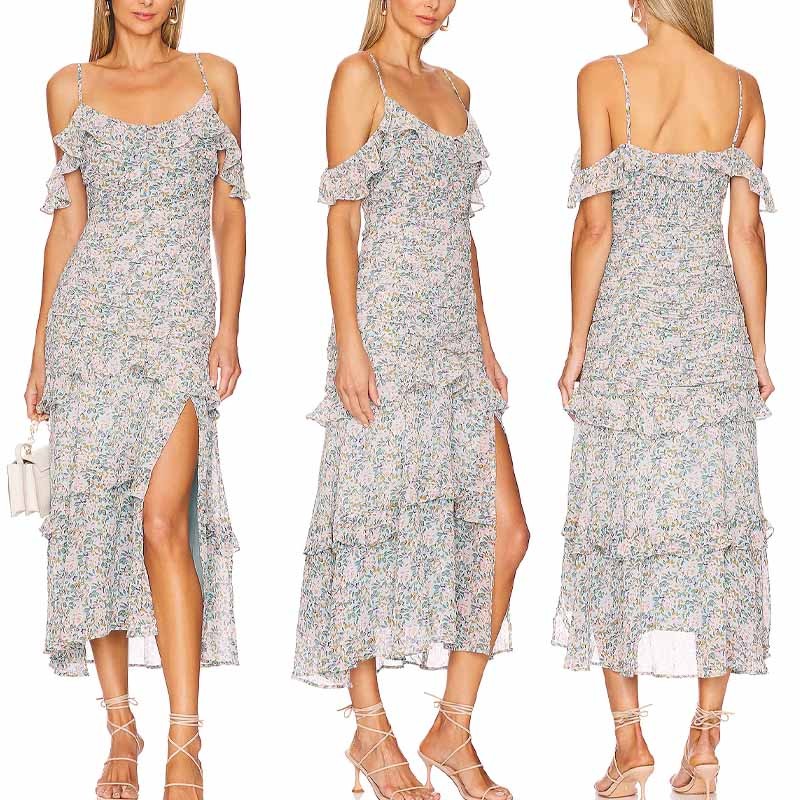 Casual Fashion Side Slit Floral Ruched Shift Midi Dresses