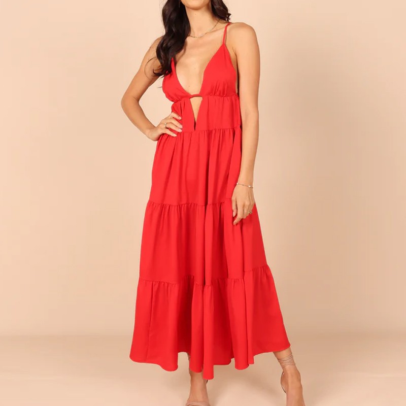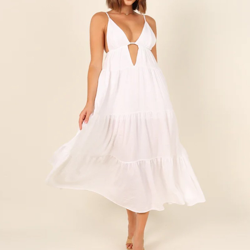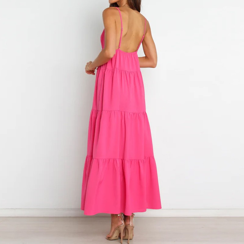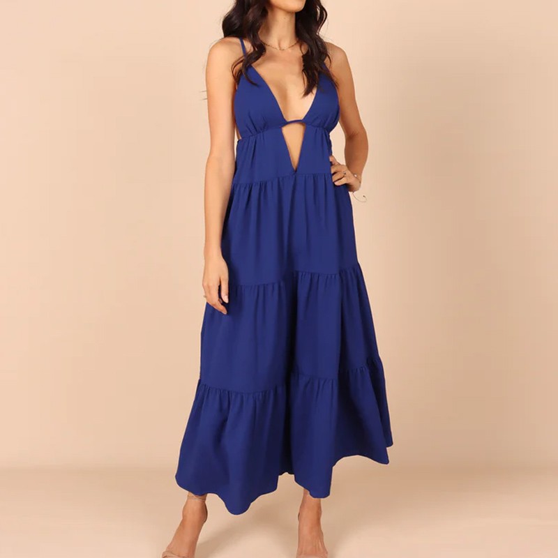 Summer Casual Sexy Deep V Neck Backless Going Out Beach Maxi Dresses