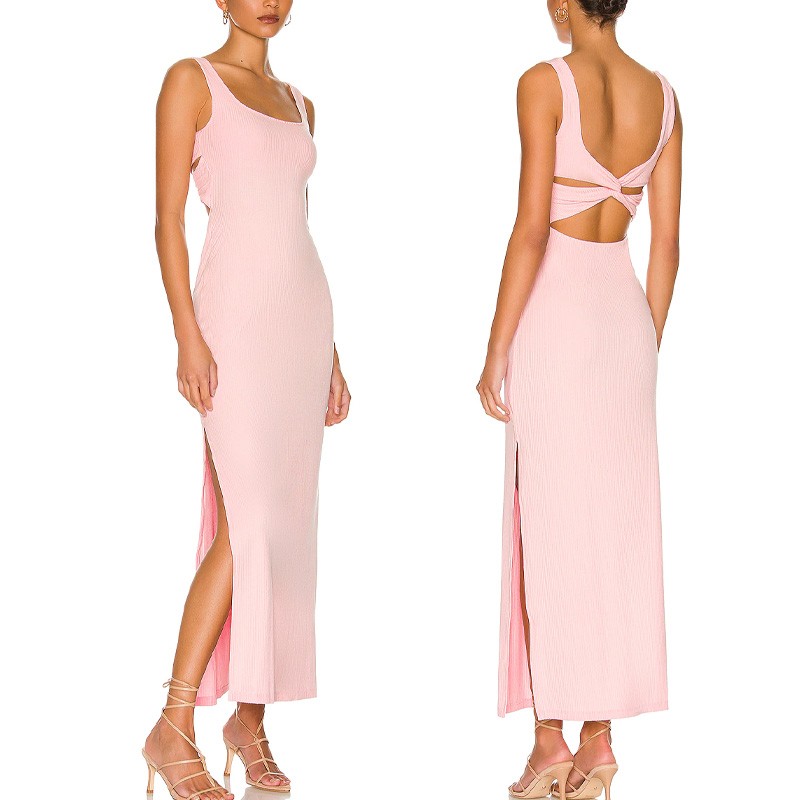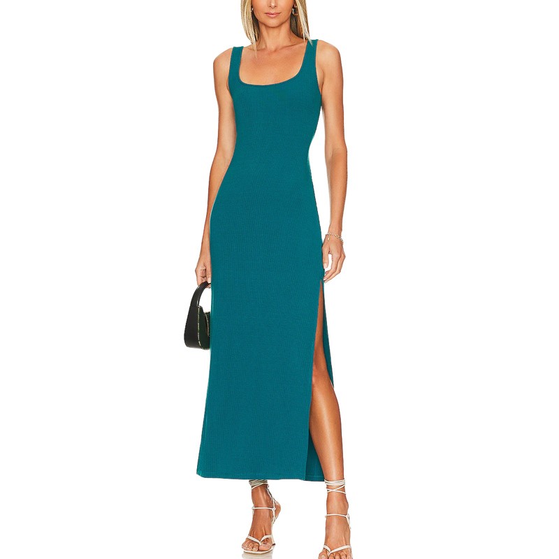 Fashion Solid Color Sexy Side High Slit Knitted Slit Dress