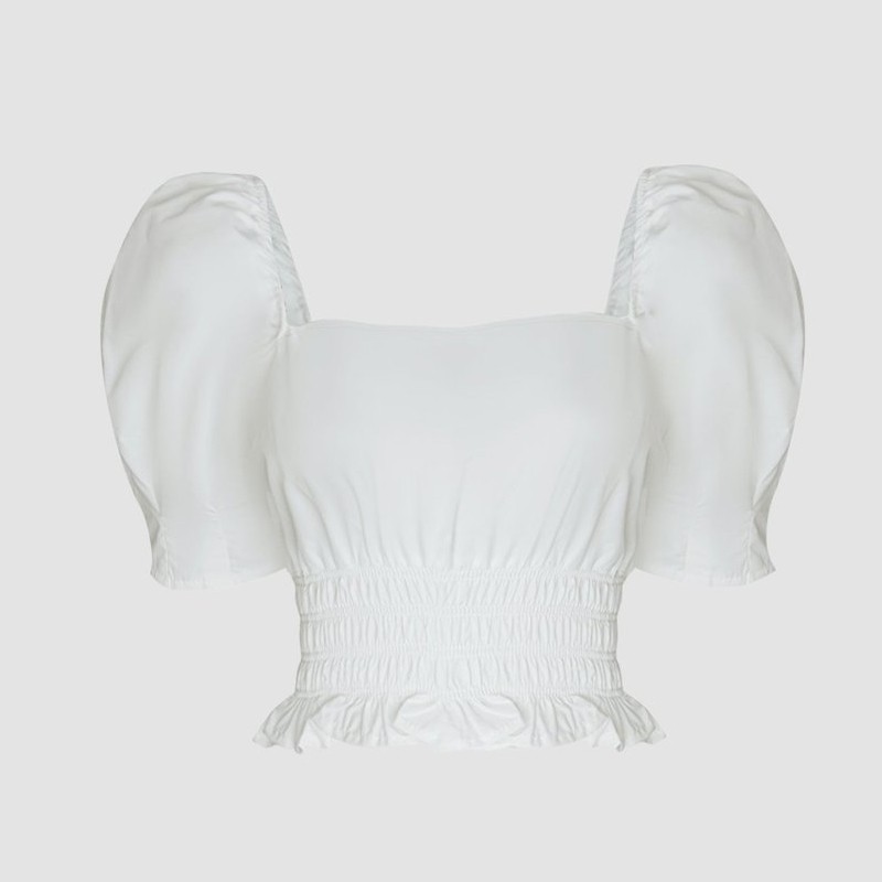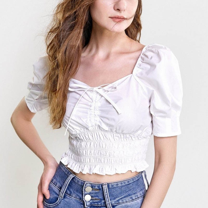 Ladies White Fashion Fitted Short Sleeve Beam Waist Blouse