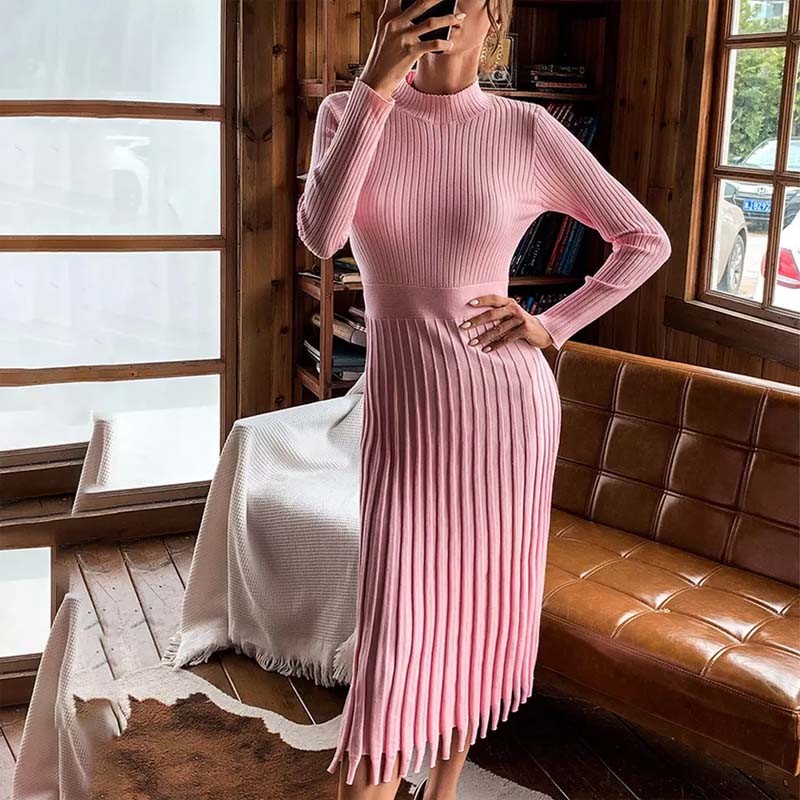 Autumn/Winter Long Sleeve Solid Color Elegant Sweater Dress