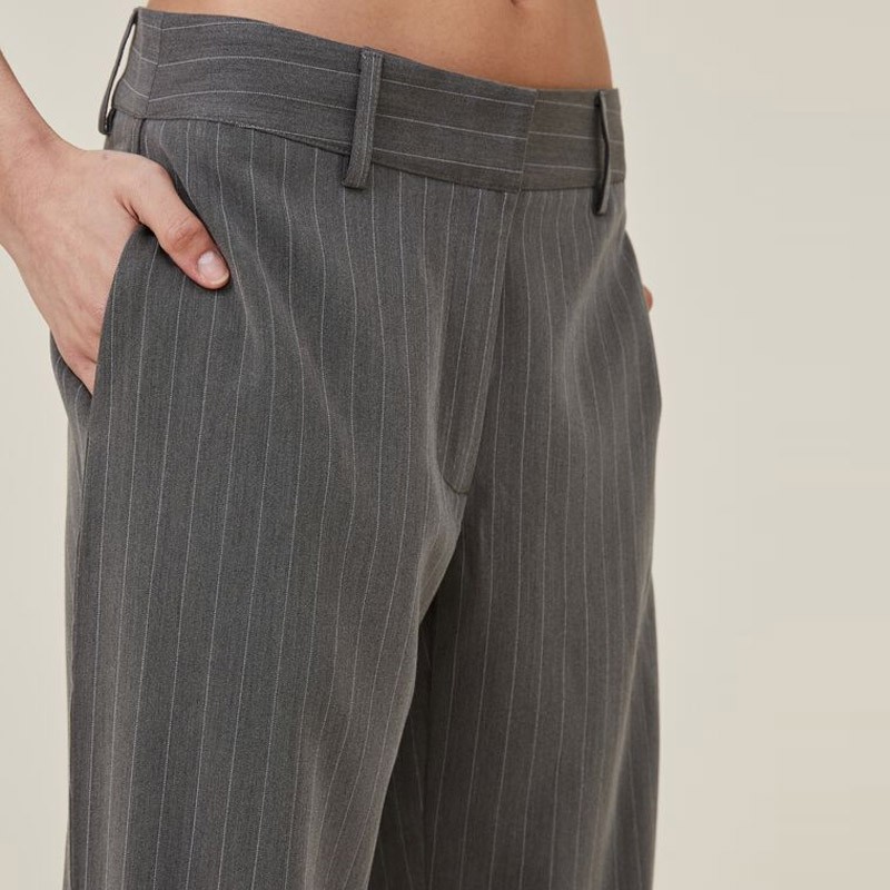 Lady Fashion Low Waist Straight Striped Dress Pants