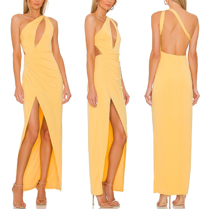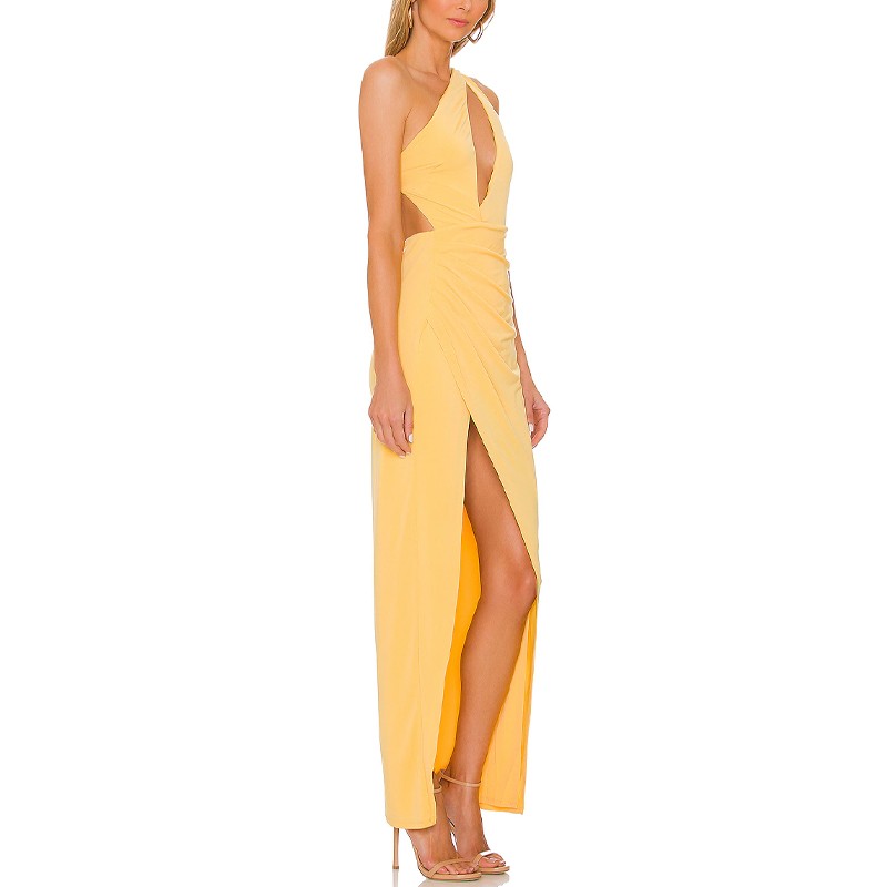 Women One Shoulder Sexy Side High Slit Backless Design Maid Of Honor Maxi Dress