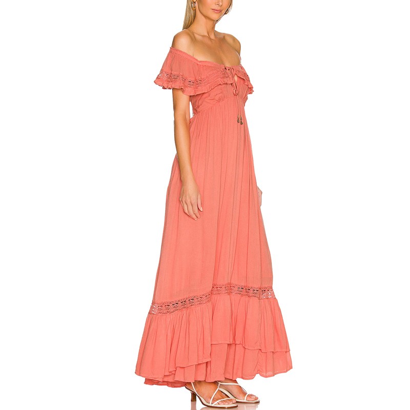 Elegant Off Shoulder Neckline Lace-up A-Line Monochrome Maxi Dress