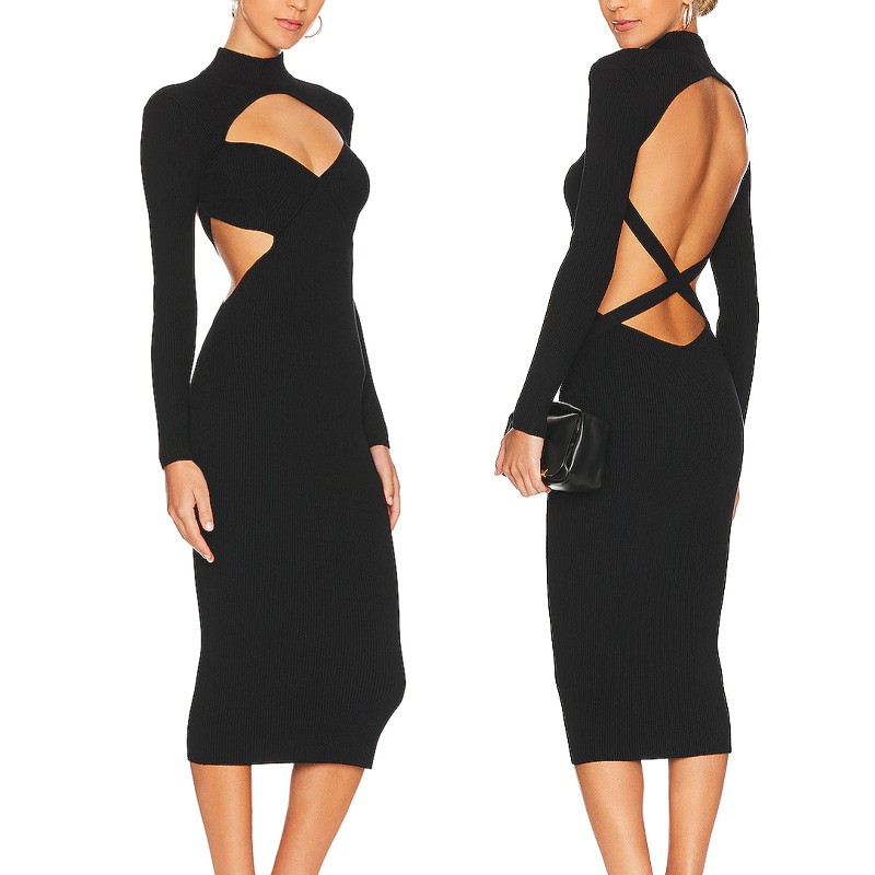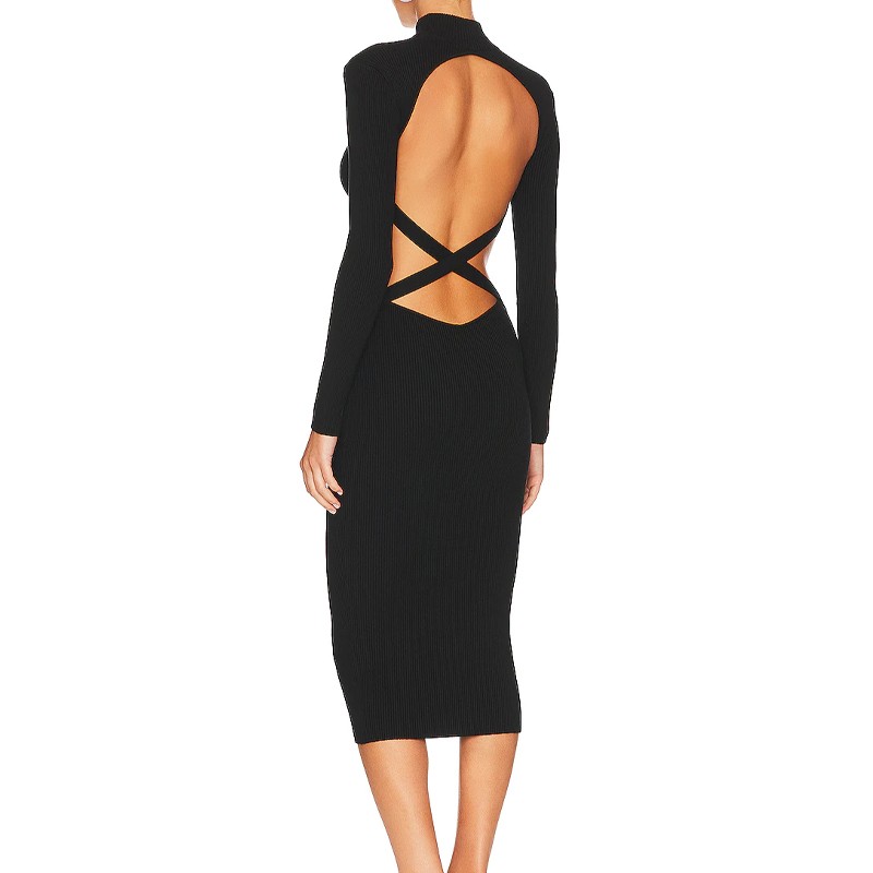 Simple Long Sleeve Sexy Backless Ribbed Chic Bodycon Knit Knee-High Dresses