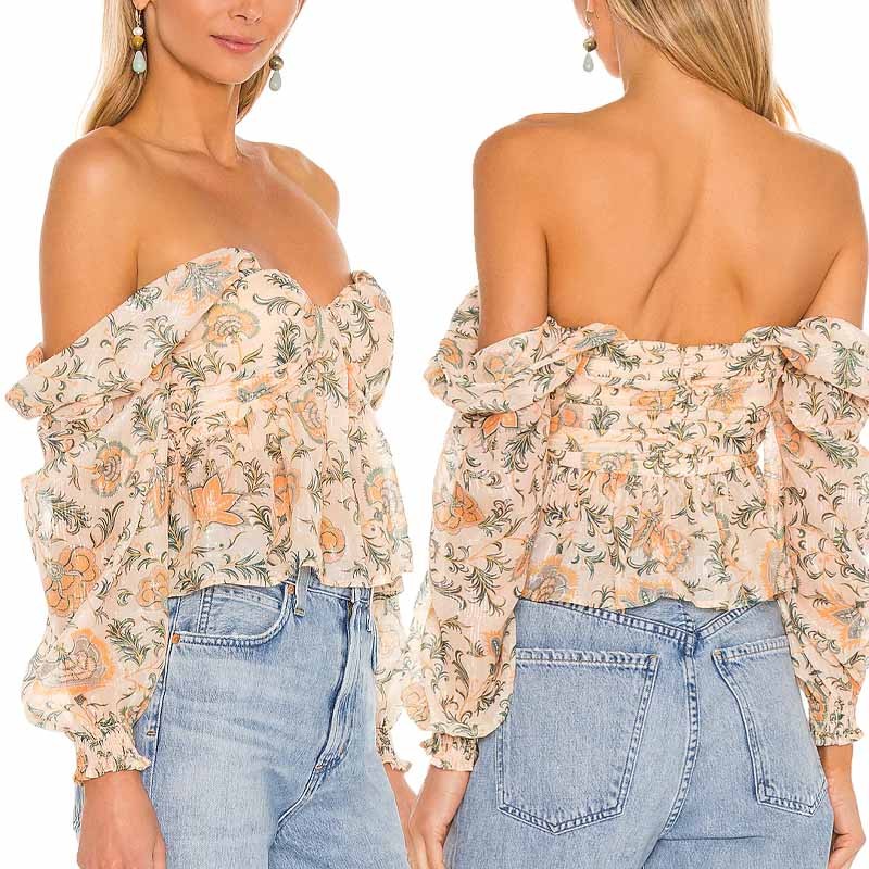 Sexy Fashion Off Shoulder Long Sleeve Floral Blouse