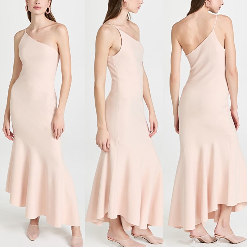 Design: One-Shoulder,Asymmetrical Flounce Hem