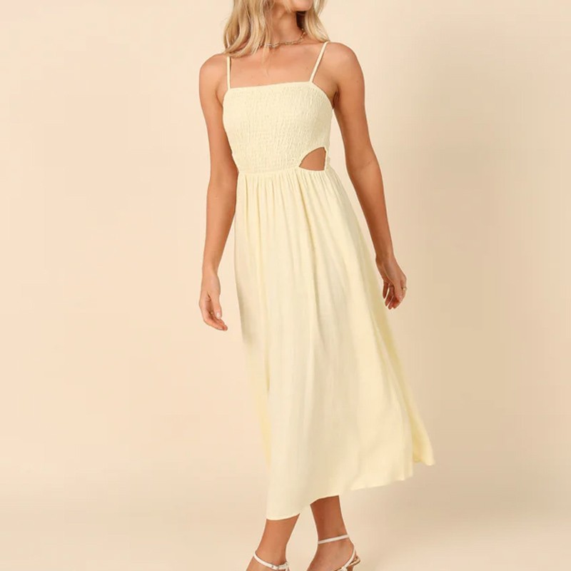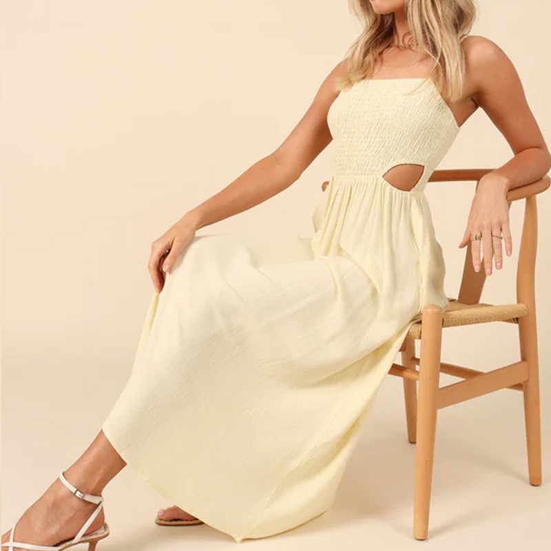 Fashion Simple Sexy Side Waist Cut Out Long Slip Dress