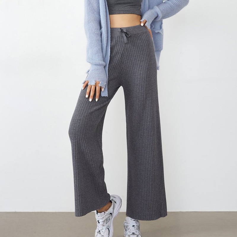Fashion Simple High Waist Slacks Knit Baggy Pants