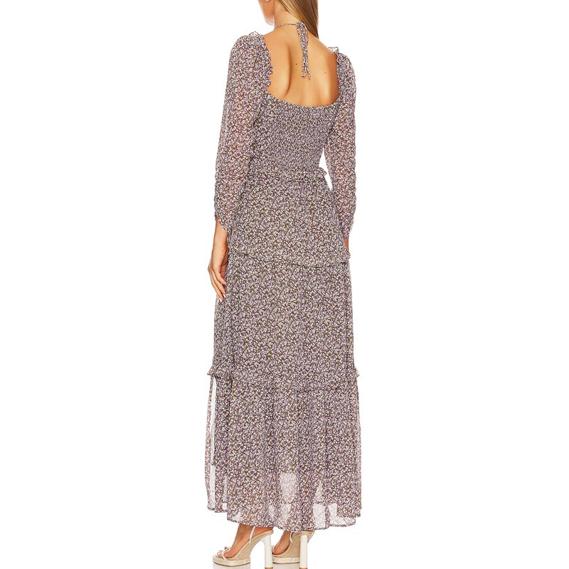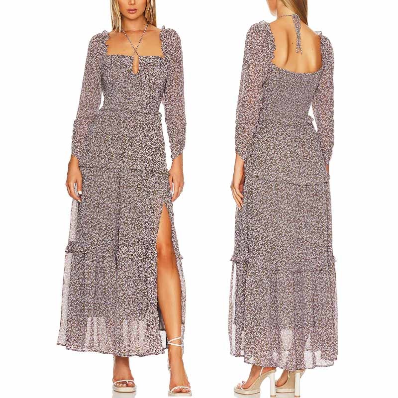 Early Autumn Long Sleeve Square Neck Floral Side Slit Maxi Dress