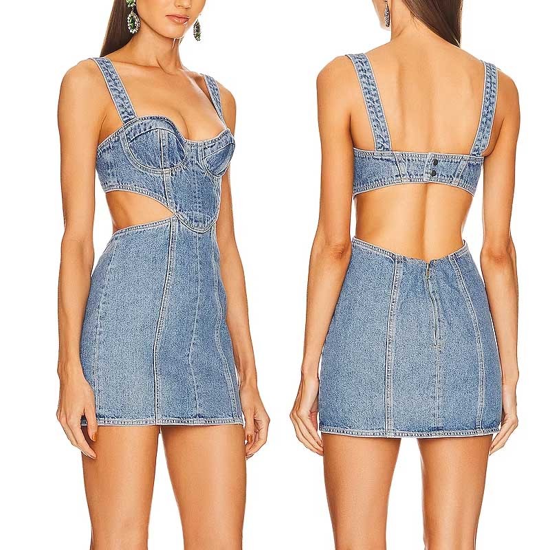 Lady Fashion Tunic Denim Cut Out Slim Mini Dress