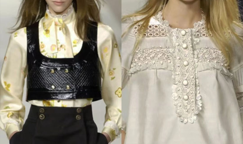 In the absence of the lead designer, the spring/summer 2007 collection of Chlo e continued the aristocratic maiden style of the previous collection. Gloria Vanderbilt, a famous American rich woman in the 20th century, became the new Muse. There is no brand of classic white chiffon shirt, delicate lace lapels, air puffed sleeves, sweet and light.