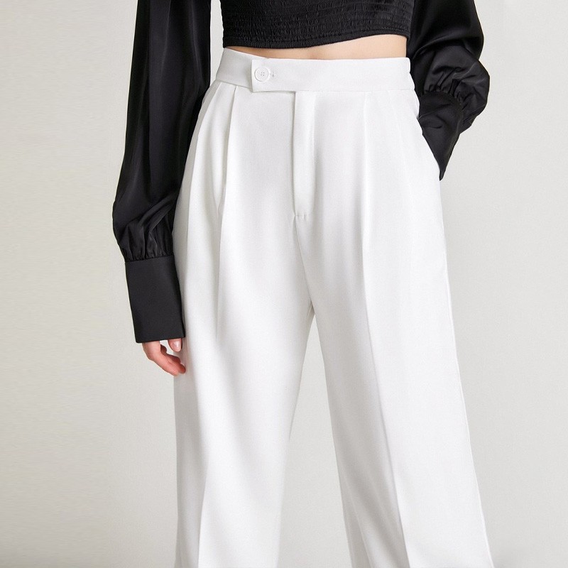 Fashion Elegant Solid Color Simple White Straight Dress Pants