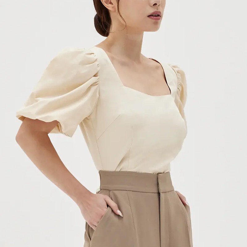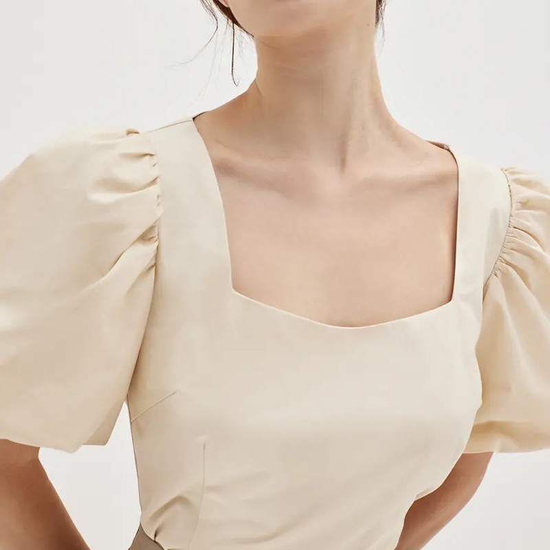 Women'S Puff Sleeve Square Collar Solid Color Simple Blouse